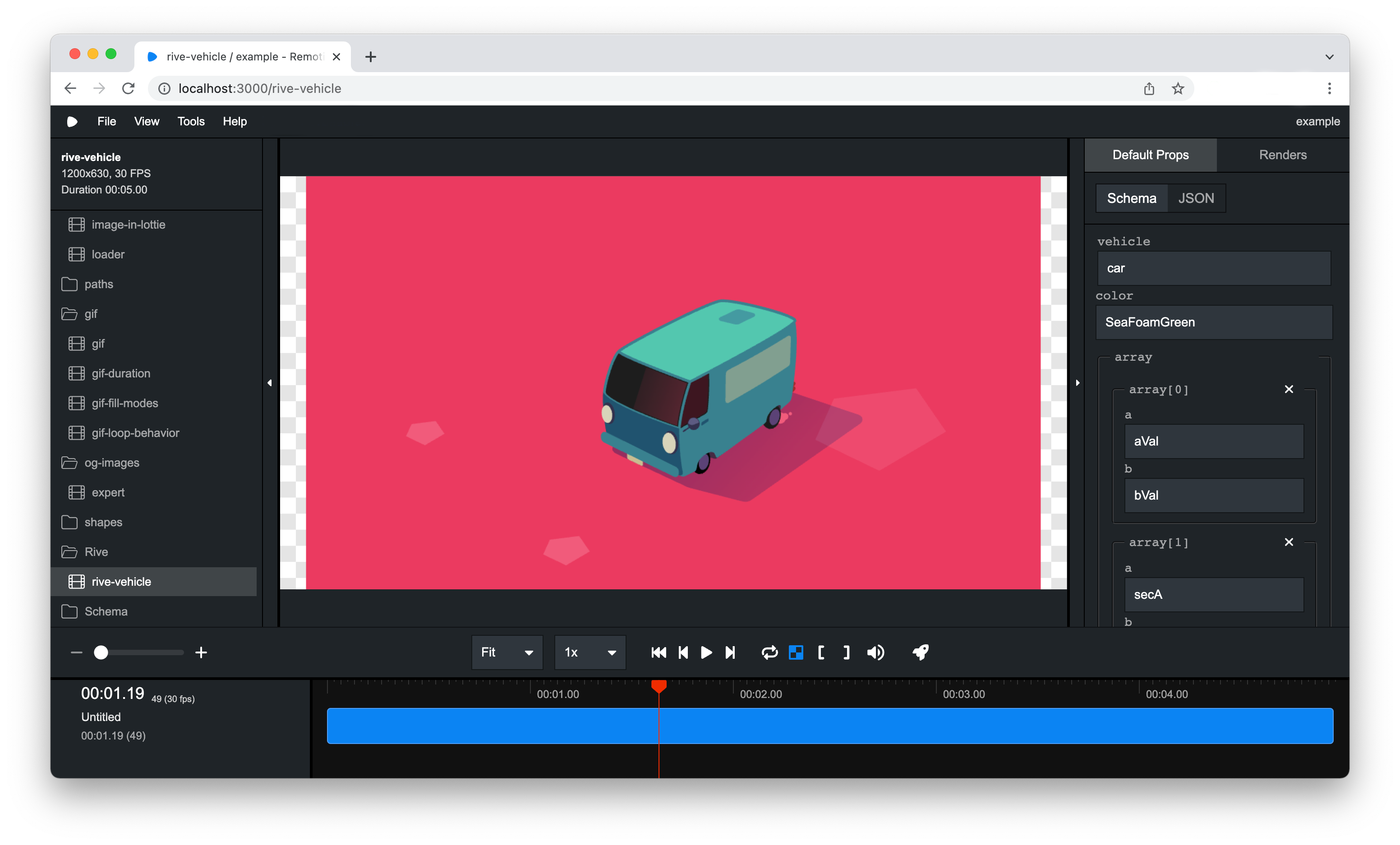 A server will be started on port 3000 (or a higher port if it isn't available) and the Remotion Studio should open in the browser.